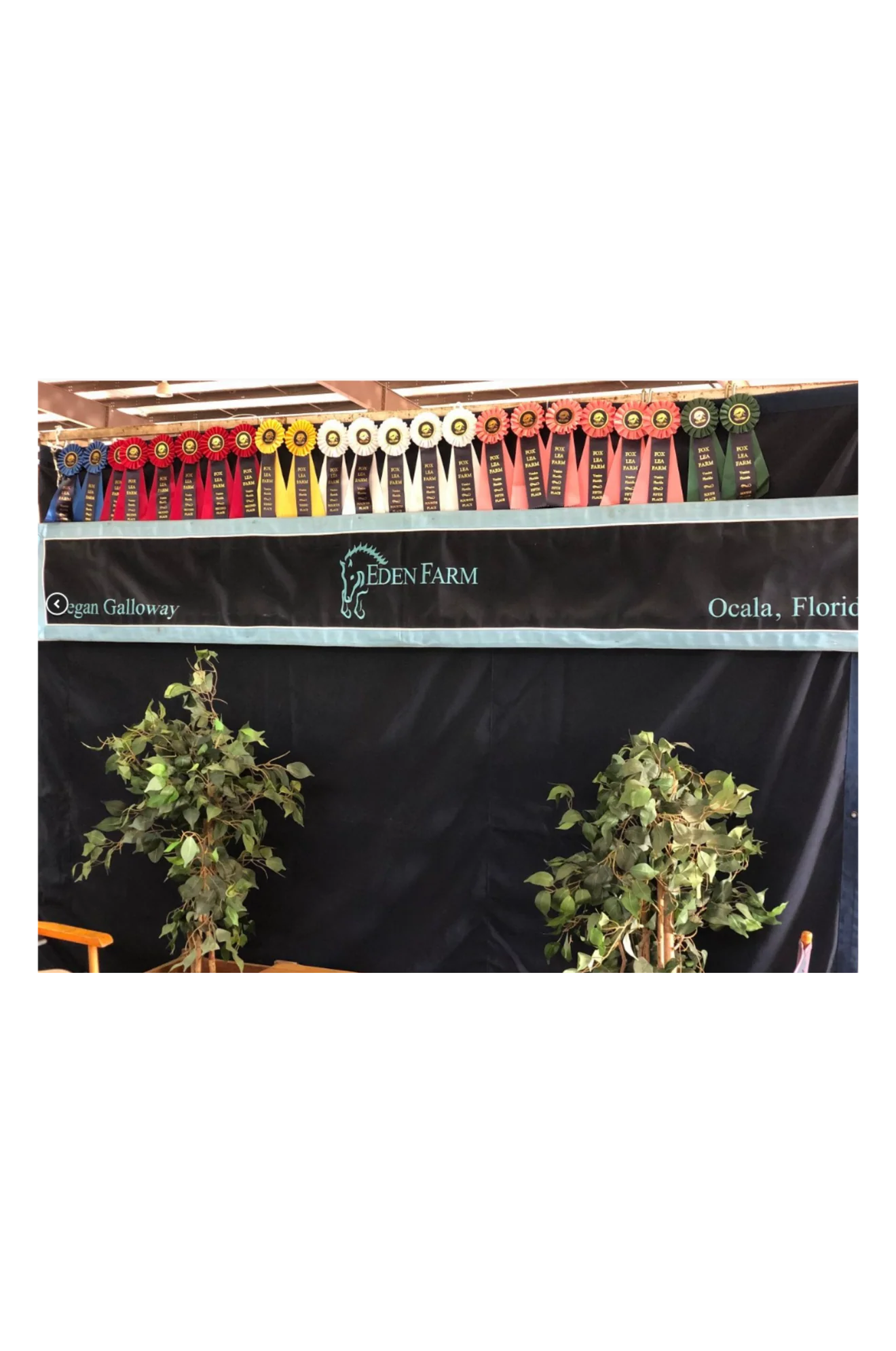 Our custom stall valance is made from Sunbrella fabric, a waterproof, canvas-like material suitable for stall setup. Create your design below by choosing your fabric, piping, and trim from our variety of available colors. Customize your look further by adding your farm name, trainer name, and location embroidery!